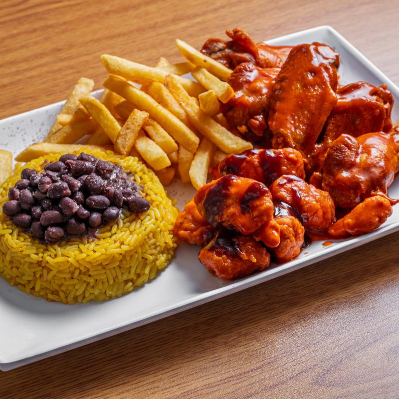 It's the best of both worlds. Indulge in a tantalizing seafood experience with 10 shrimp and 1 piece of fish (both can be ordered fried or grilled). Made to order with your choice of side (fries, rice & beans, or side salad) and a fountain drink